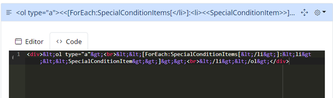 <div><<[ForEach:SpecialConditionItems[<br>]:* <<SpecialConditionItem>>]>></div>