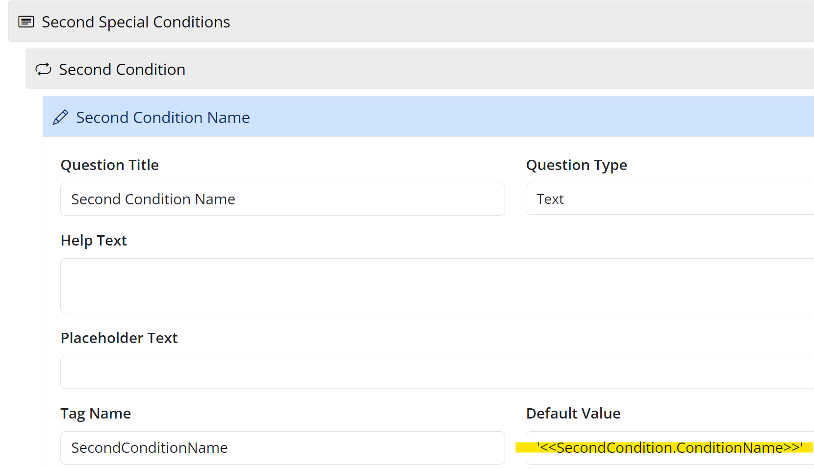 - Thank you @ShaunDavis. The ‘ForEach’ option in the Default Value is showing the correct number of repeater items in the second repeater BUT, it’s not outputting the values from the First Repeater questions. I think I may have the syntax wrong. — Anon